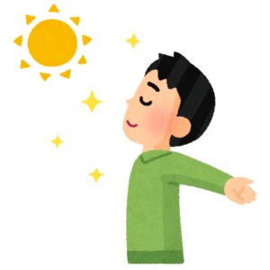 ①日光浴をする(地域や時間帯による) 時間は30分~1時間程度が理想